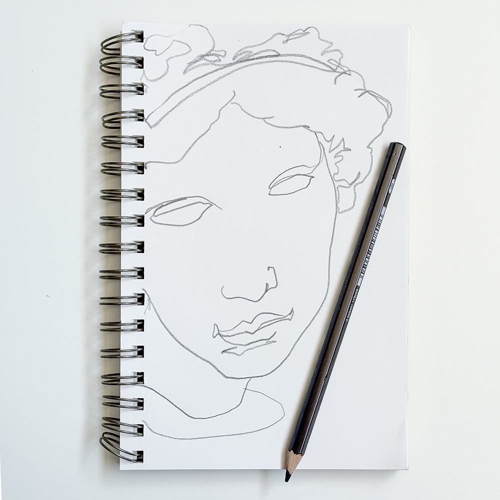 a contour line drawing of a classical woman's face